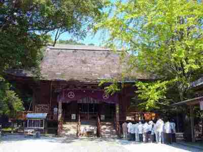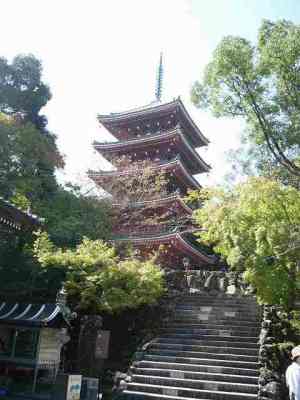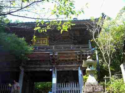 【解 説】 駐車場から、納経所を横目で見ながら進むと左手に位牌堂、宝物殿、鐘楼が並んでいる。仁王門(写真1)をくぐり、石段を登ると正面に五重塔(写真2)、右側に重要文化財に指定されている本堂(写真3)、左側に大師堂(写真4)がある。