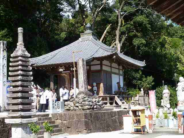 【車】40番札所(観自在寺)から、国道56号線を西方向に、約43Km走った所のT字路を右折し、県道57号線に入り、約6Km走った所の「務田」交差点を直進し、約600mで左折、30mで右折し、約600mで駐車場。