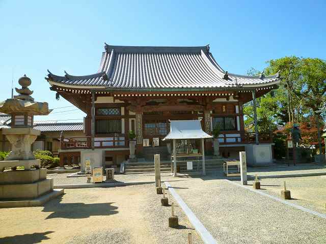 【解 説】山門(写真1)をくぐると、右手に大師堂、左側に白衣観音、水子地蔵、13仏がある。広い砂利を敷き詰めた境内の奥に金比羅号、薬師堂、および本堂(写真2)があり、本堂の左側に庫裡(くり)、納経所はこの場所である。