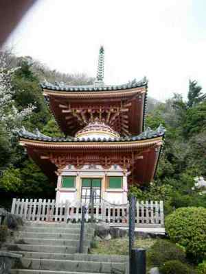 参拝した日は、4月16日で境内の桜が満開で多くの花見客であふれていた。仁王門(西宮市の文化財に指定、写真1)と参道の石段は、自動車道路で分断され、仁王門が何か取り残されたような存在になっていた。参道の石段を登りきると、正面に本堂(写真2)右側に鐘楼、本堂の左側に大師堂、本堂の右側に不動堂、納骨堂、甲山登山道入口(写真3)、多宝塔(写真4)などがある。