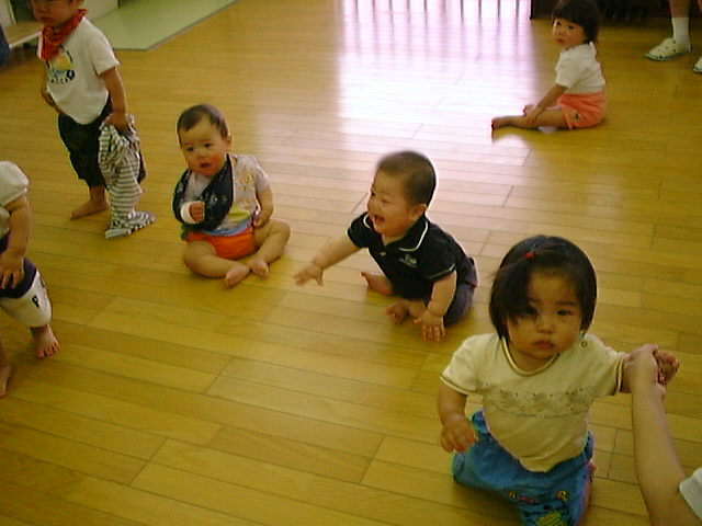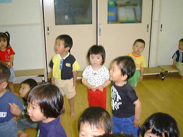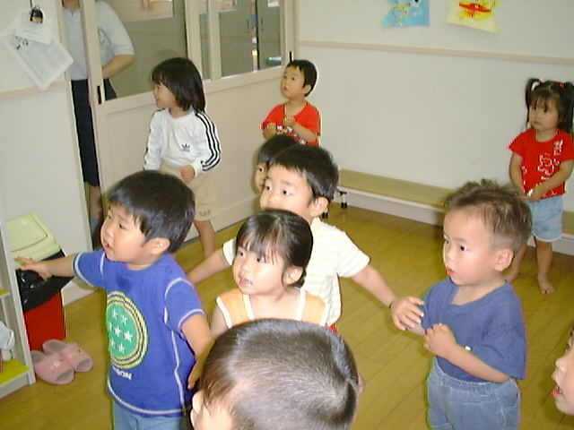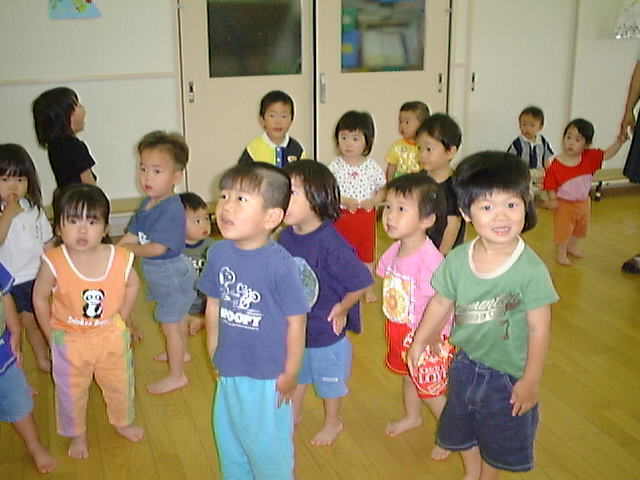 今回は、みんなの大好きなキッズビクスの写真です。川添保育園では、0歳児クラスから5歳児クラスまで、みんながキッズビクスを楽しみます。跳び箱、竹馬、どれ一つをとっても、リズムが大切になってきます。歩くこと、走ることに加え、キッズビクス・リトミックでリズム感を養っていってほしいと思っています。