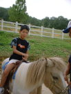 ポニーに乗馬体験 係りの人がいるから安心 子牛にミルクやり体験 羊に餌を・・