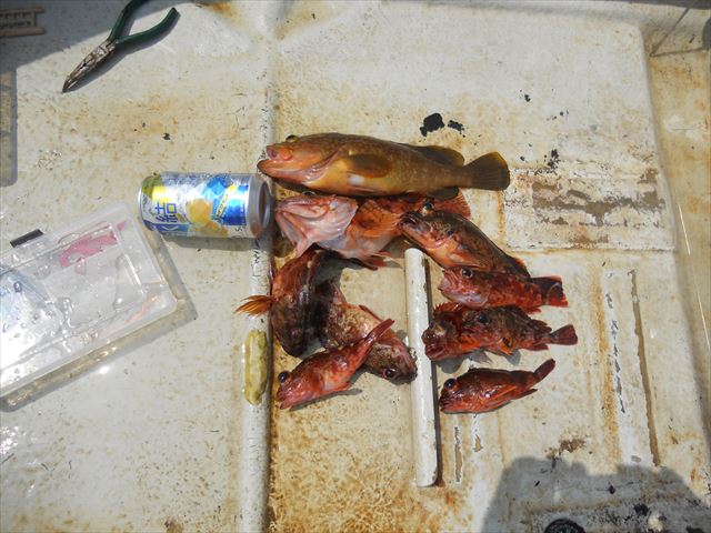 ポイント到着。 緩やかな南風、エンジンを止めてどてら流し。 着底後直ぐ巻き巻き。