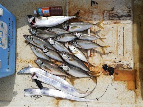 いつの間にか釣れないタチウオ竿は仕舞い込んでアジサビキだけに、内職のつもりが本業になってしまいました。