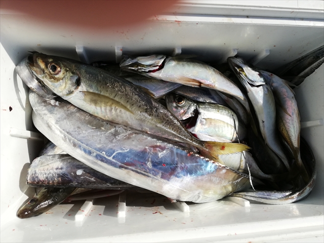 朝のうちは潮が動かない予報なので、先ずはタチウオと思ったのですが通りかかったアジのポイントに反応があるので少し道草です。
