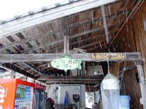 はい〜釣り堀の〜「石田」に到着〜、アッハハハ、氷柱(つらら)だよ〜。