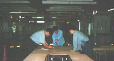 レールの配置ほぼ終了。微調整中。(8時過ぎ)