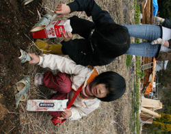![]() ![]() 牛乳パックのリサイクル 底の四箇所に穴を開け、土を入れ、どんぐりを植えます、一年目、パックは、しっかりしています(リックに背負って異動できる)、四〜五年が経つと、パックは土に返ってしまいます。 |