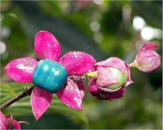 遅く入渓したので帰りを考えるとそんなに奥には入れないと、自分自身に言い聞かせながら歩く。 荒れた林道には花は少ないがそれでも、アケボノソウ、ノコンギク、アキチョウジなどは揃っている。 クサギの果実が追羽根状で可憐な姿を見せているのは愛嬌である。