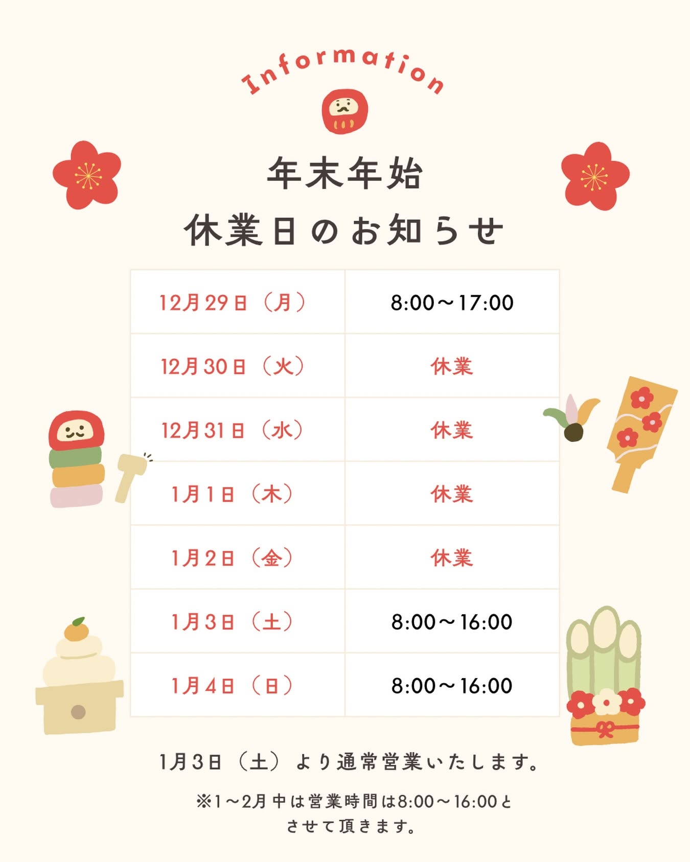 年末年始のご案内