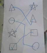同じ図形を線で結んでいます。最初にどこからどこまで線をひくか確認
