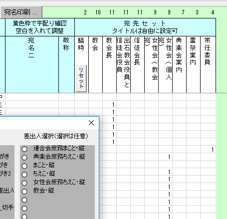 宛名印刷ソフト Excelを使って宛名を印刷します。年賀状、行事の案内など、場合に応じ た宛先を設定しておけるので、あっという間に印刷完了。 市販の宛名ソフトより手軽で便利です。使い慣れたエクセルで、データの 管理も簡単。 ハガキ、長形3号、長形4号に対応しています。 ■ 「宛名印刷」のダウンロード atena.zip (142KB。現在のバージョンは20160211です。)