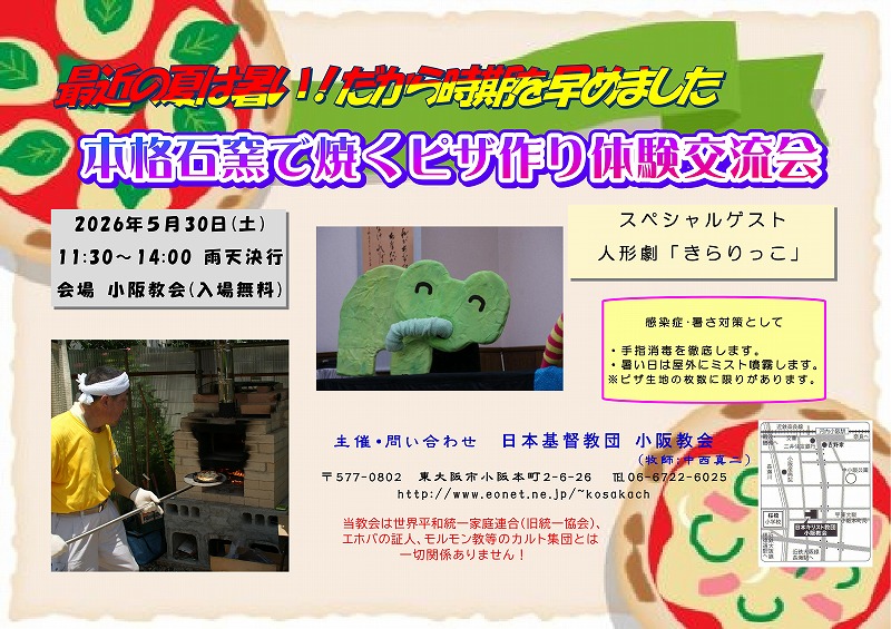 夕礼拝は小阪教会ホームページの年間スケジュールをご確認ください。