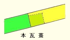 「本瓦葺」の重ね葺きの場合、丸瓦の一方に重ねしろを取るため、段が出来ずフラッ |