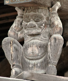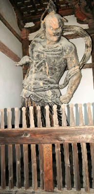 「仁王像」は現存最古でしかも天平時代唯一の遺構です。ただ、後世の補修に於いて 金剛力士像は金剛杵を持っていなければならないのに本像は両像共素手の像である 「塑像」の技法については後述いたしますが大型の塑像を制作する場合「木舞(こま |
