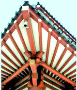 屋根を支える垂木の構造は、中国、韓国では地垂木と飛檐垂木の「二軒(ふたのき)」 |