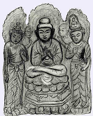 「五尊像」すなわち「三尊像および比丘像」の様式は中国では多く見られますが、我が |