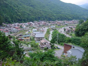 南側峠道からみた宿場町全景 と 街道沿い町並み