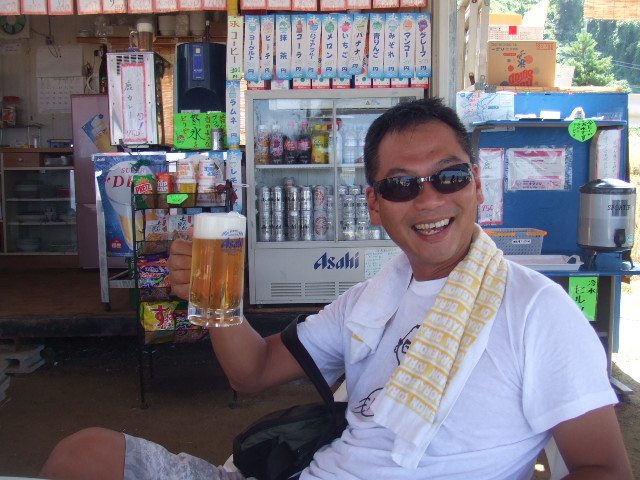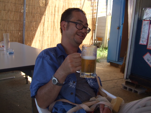 通りすがるピチピチ水着ギャルを肴に、大ジョッキを空けまくるメンバー。