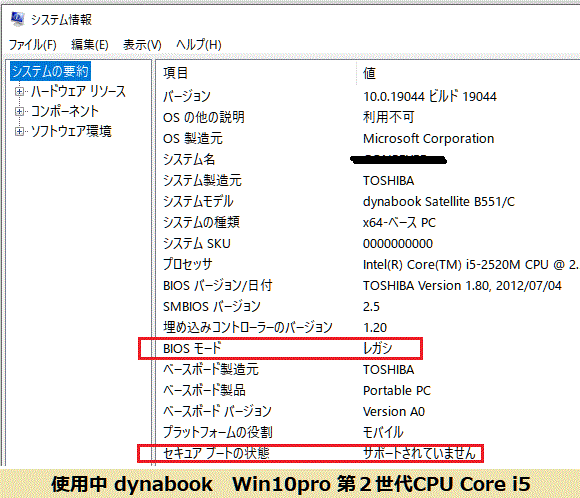 通常はレガシ BIOSによる「立ち上げ」(Boot)をしていてMBR方式を使用していたということです。