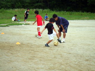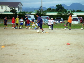 サッカーに必要なリズム感、バランスから始まり、コーチのお手本が何回もあり、