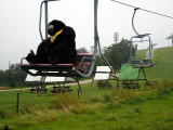 山頂は霧で視界が効かず、スキーのリフトが淡々と動いていました。時折、『ぬいぐるみ』をカップルにみたててリフトを運行していました。ゴリちゃんもいて、それを見るだけでも楽しめます。