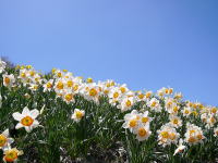 この季節はスイセンがスキー場一面に咲くので、これを見るために訪れる人が多いようです。