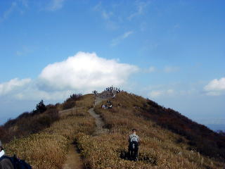今回、私は初めての武奈ヶ岳です。JR比良駅からとぼとぼと歩きだし、登山口からはロープウェイが通っていますが、山歩きの王子様はひたすら自分の足であえて山道を登ります。お金をかけずに自然を楽しむことが基本です。この山はけっこう高低差(1100m)があるので体に堪えますが自然を満喫でき、頂上に到着すれば疲労も吹っ飛びます。この日は天候に恵まれ行楽客が多く、山道は渋滞です。アマチュア写真家も多く自然の美しさをカメラに収めておられました。