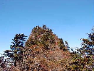 休憩をとって頂上に向かいますが、頂上手前に大日キレットという尖った山があります。そこには祠があり修行の場となっているようです。急な登りで鎖とはしごを利用して登りますが一歩間違うと谷底に落ちる危険な所です。私も登りましたが下を見ると足がふるえました。