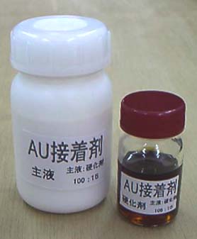 に上皿テンビン等で接着剤の混合量の計量と、接着剤をトップ部分に