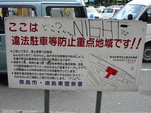 よくある落書きだが、センスの欠片も無いぞ!!「ここはどこ?」ってすぐ下に書いてあるし・・・・・・。それに「駐車マナーアップダウン」って何だ?さすがはグッピー、頭脳のイカレ具合ならこの世で右に出るものはいないという話は嘘ではなかったのだな(笑)。