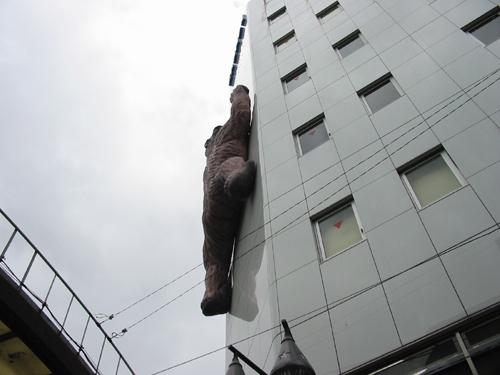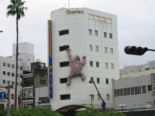 8月某日某所。降りしきる雨の中、ラーメン屋を目指して歩いていたところ、突如悲鳴が。ふと目の前のビルに目をやると、なんとあのキングコング?が暴れまわっているではないか!!招かれざる客の襲来により逃げ惑う人々、耳も避けんばかりの阿鼻叫喚・・・・・・・。そんな中、命を賭してまで撮影したのが↓
