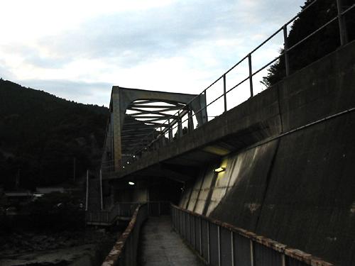 一見したところ、何の変哲も無いトラス橋・・・・・ですが、このトラス橋にはもの凄い(というほどでもないけど)秘密が隠されて・・・・・。ココからではその秘密がワカランので、もう少し近づいてみよう。