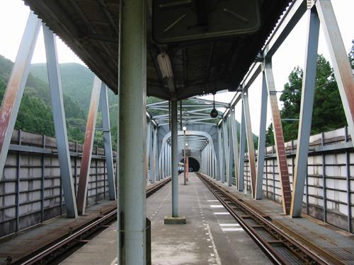 というわけで、そこにあったのは駅でした。にしても、橋の上にある駅とはこれまた珍しいですなぁ・・・というか、こんなところによく造ったなぁ・・・。。因みに、JR土讃線の土佐北川という駅です。