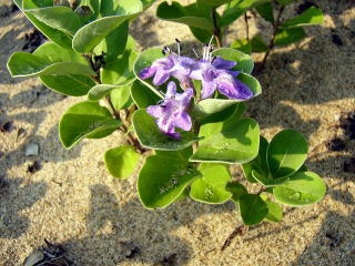 ホテルから草だらけの細い道を通っていくと、砂の斜面には浜茄子の花がザ〜〜ッとじゅうたんみたいに咲き乱れていた。