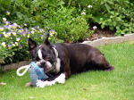 プールに入って(入れられて、の方が正しいか!・笑)疲れたのか、レオンは早くから爆睡しております。。。