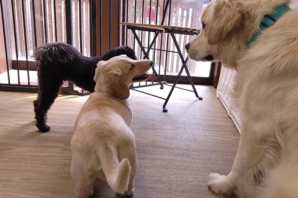 『犬の託児所』です。家以外の場所で過ごしたり、家族以外の人や他犬との関わりを通して社会性を身につけます。