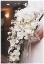 挙式の時に持ったブーケ。母の知り合いの方に作っていただきました。 ユーチャリスとカスミソウを模った造花です。 |