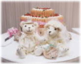 ウェディングケーキ型のウェルカムボード。 こちらも母の知り合いの方に作っていただきました。 |