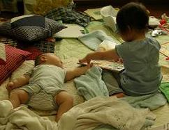 退屈してくると、寝ている息子を起こしにいくのは止めてほしい(汗)。