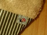 表は、ベージュのタオルにストライプのヒッコリー生地をつけ、ワンポイントにてんとう虫。