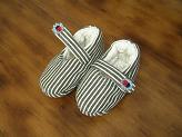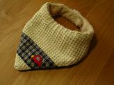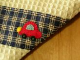 裏は、ワッフル生地に紺のチェック。ワンポイントにフエルトで車のアップリケ。