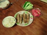 夕食は、とうもろこしご飯、焼きナス、トマト、きゅうり、そして(写真には写っていませんが)じゃがバタでした。