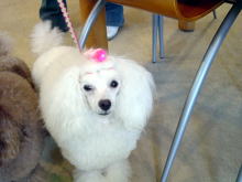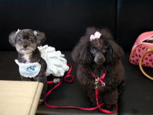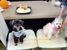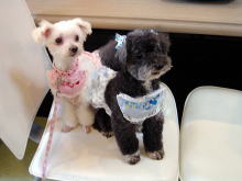 2匹で色違いの服なんだよね♪ | お店のママさんがシャボン玉を吹いて下さったのに、ぜんぜん写ってない…。 | |