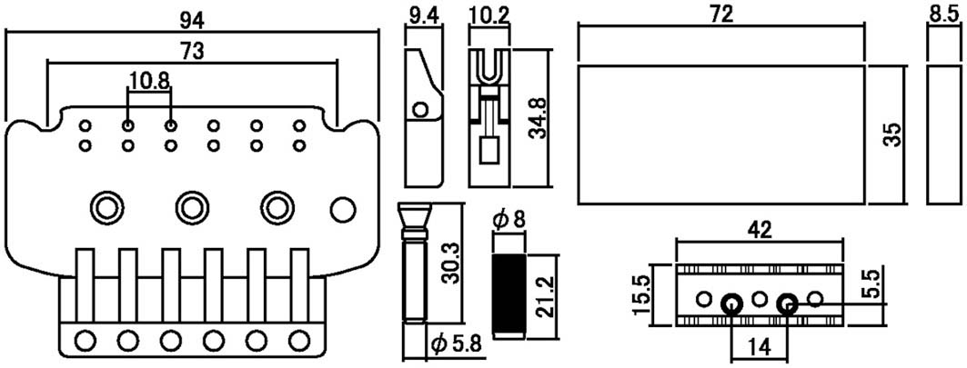こちらのサステインブロックにはtakeuchiの刻印は無し