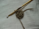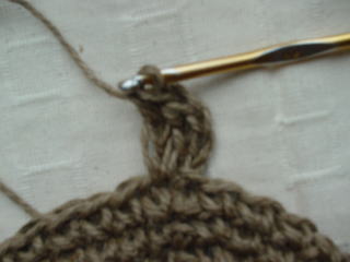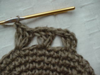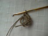 んで立ち上がり鎖編み3目。長編み2目編みます。
