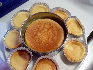 * 我が家はケーキの型が小さめなので、あまった生地はアルミカップでミニ・チーズケーキにします。