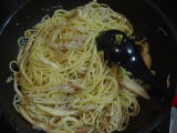 仕上げにおしょう油を鍋肌からジュワーとかければ