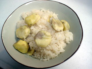 * 我が家は【おこわ】って機能があるんだけど、普通の炊飯器なら少し水を控えた方がいいかも??