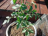 ←6月13日 花壇からミニ・トマトの苗が出ているのを発見!! 去年のです、きっと。 畑に入れてあげる場所もなく 鉢で我慢してもらうことにします(^^) ミニ・トマトは誰でも簡単に育てられる手のかからない 野菜です。
